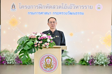 วันที่ 15 มกราคม 2569 เวลา 08.30 น. กรมการศาสนา กระทรวงวัฒนธรรม จัดพิธีเปิดโครงการอบรมฝึกหัดสวดโอ้เอ้วิหารราย (ส่วนกลาง) และผ่านระบบสื่ออิเล็กทรอนิกส์ (ZOOM) โดยมีนายชัยพล สุขเอี่ยม อธิบดีกรมการศาสนา เป็นประธานในพิธี พร้อมด้วยคณะวิทยากรจากกรมศิลปากร หน่วยงานด้านศิลปวัฒนธรรม ครู นักเรียน นักศึกษา และสื่อมวลชน เข้าร่วมกิจกรรมอย่างพร้อมเพรียง ณ อาคารอเนกประสงค์ กรมส่งเสริมวัฒนธรรม กรุงเทพมหานคร